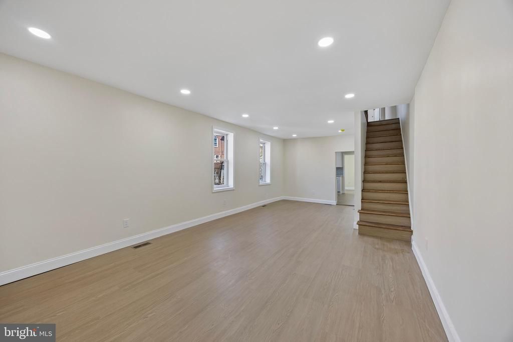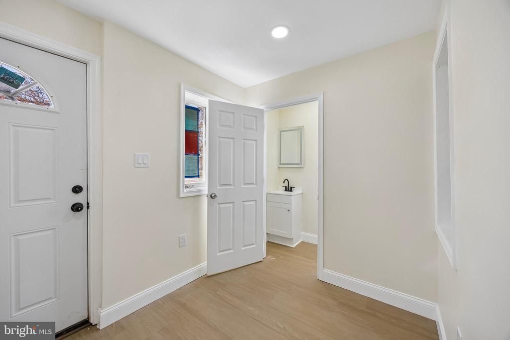Welcome to 1051 Springfield Road, a fully gut-renovated twin home where everything is brand new from top to bottom. New electrical, new HVAC, new hot water heater, new flooring, new kitchen, new bathrooms. This is true move-in ready, not cosmetic-refresh ready. Step inside through a bright, welcoming foyer with a newly added powder room right off the entry, a thoughtful addition that immediately sets this home apart. The foyer flows into a spacious open-concept living and dining area, bathed in natural light and finished with new LVP flooring and recessed lighting throughout. Continue into the fully renovated kitchen, a standout space featuring white shaker cabinets, quartz countertops, a gray subway tile backsplash, and new stainless steel appliances including a gas range. Beyond the kitchen is a versatile rear bonus room with direct backyard access, ready to serve as a home office, playroom, or mudroom, whatever your lifestyle calls for. Upstairs, three freshly finished bedrooms offer comfortable living with new flooring and plenty of natural light. The hall bathroom is a genuine showpiece with floor-to-ceiling marble-look porcelain tile, a soaking tub, recessed lighting in the shower, and gold fixtures throughout that give the space a cohesive, elevated feel. The finished basement adds valuable bonus space with new LVP flooring and recessed lighting, ideal for a family room, home gym, or extra storage. Out back, a fully fenced private yard with fresh lawn and concrete patio leads to the detached one-car garage, one of the few in the area, plus a driveway that fits up to two additional vehicles. Parking for three is a rare find in this market. Conveniently located in Darby Borough with easy access to public transit, major roadways, and all the amenities of neighboring Upper Darby. This is Delaware County living at an exceptional value.