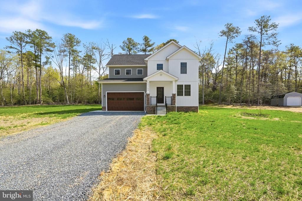 IMMEDIATE DELIVERY! Welcome to 20260 Hawks Way, a stunning immediate delivery brand new construction home situated on 1.34 flat acres in rural Leonardtown. This 4-bedroom, 2.5-bath residence showcases a modern design with thoughtful details and high-end finishes throughout. The main level features luxury vinyl plank flooring and a bright, open-concept layout perfect for both everyday living and entertaining. The gourmet kitchen is the heart of the home, boasting quartz countertops, stainless steel appliances, and stunning two-tone shaker cabinetry that combines warmth and sophistication. A spacious center island offers additional prep space and seating, all overlooking the expansive living and dining areas. Upstairs, the oversized primary suite offers a peaceful retreat with a generous walk-in closet and a spa-like en-suite bath featuring dual vanities, a custom tile shower, and sleek black fixtures. Two additional bedrooms, a full bath, and a convenient laundry room complete the upper level. With a two-car garage, no HOA, and a private, wooded setting just minutes from Leonardtown’s charming town square, waterfront attractions, shops, and restaurants, this home offers the best of Southern Maryland living. Don’t miss the opportunity to make this stunning new home your own.