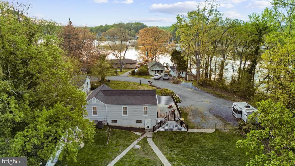 Welcome home! Nestled in this cherished waterfront community, serene views of Whitemarsh Creek greet you right from the front of the home. Whether you're looking to downsize into a low-maintenance water-oriented lifestyle or capitalize on incredible short-term rental potential, this property checks every box. This thoughtfully updated home offers an open floor plan ideal for effortless entertaining and everyday living, with rich hardwood floors and plantation shutters throughout. The generously sized living room features a charming brick corner fireplace and opens seamlessly into the gorgeously remodeled kitchen (2016), appointed with stainless steel appliances, an abundance of bright white cabinetry, granite countertops, and classic subway tile backsplash. The oversized island breakfast bar opens into the adjacent sunny dining area, where French doors lead directly to the wraparound deck for effortless indoor-outdoor living. A versatile flex space off the main living area is perfect for a home office, reading nook, or creative retreat. Both rare main level bedrooms feature elegant crown molding, plantation shutters, and ample closet space, connected by a beautifully updated jack & jill bath with a frameless glass door shower and modern finishes. The lower level offers a stunning full bath with an elegant freestanding soaking tub and floor-to-ceiling tile surround, dedicated laundry, and excellent potential for a workroom, hobby space, or additional storage. Step outside to the large wraparound composite Trex deck with remote-controlled retractable sunshade, where those front-facing water views set the perfect backdrop for sipping your morning coffee, dining al fresco, or simply unwinding as the sun sets over the creek. The fenced backyard is a true retreat as well, complete with a paver patio and brick fire pit ideal for gatherings. A storage shed and ample driveway parking large enough for parking an RV, boat, or summer guests round out the package. Major home system updates including roof (2022) with transferable lifetime warranty, HVAC (2024), water heater (2024), and windows (2015) offer true peace of mind. With Holiday Hill Marina only a block away, and both Weis Markets and Safeway conveniently within 5 miles, you'll be just minutes to charming downtown Annapolis, Mayo Beach Park, and Triton Nature Park. Quick access to Solomons Island Road, Central Avenue, Route 50, and Crain Highway. Come experience the relaxed water lifestyle this special community has to offer - schedule a private tour of your gorgeous new home today!