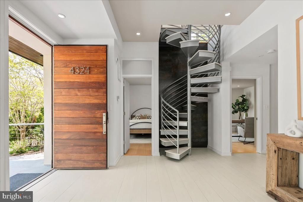 Welcome home to a dramatic yet inviting residence located on a tree-lined street in the heart of Bethesda. This rare offering masterfully blends modern design with warm livability. Soaring ceilings and abundant natural light fill every room, creating an open, airy environment equally suited to quiet everyday living and spirited entertaining. The seamless open-concept floor plan is an entertainer's dream and a canvas purpose-built for art collectors looking to showcase their finest works. Stepping inside, you are immediately welcomed by soaring ceilings, generous natural light, and open-concept living at its finest. At the heart of the home, the chef's kitchen is outfitted for the most discerning cook. A full suite of Miele and KitchenAid appliances, a dedicated prep sink, and a built-in wine refrigerator deliver professional-grade performance with effortless style, making it as functional as it is beautiful. A large living room with a gas fireplace offers a warm, inviting setting to begin an evening of entertaining, while the generous dining room at the rear of the home opens through double doors to the lush landscaped backyard, seamlessly connecting indoor and outdoor living. Completing the main level are two spacious bedrooms served by a full bathroom, alongside a main-level primary suite featuring dual built-in closets and a beautifully appointed en-suite bathroom with Porcelanosa tile, a soaking tub, separate walk-in shower, dual sinks, and a private water closet. Step outside through the primary suite's sliding doors to your own lush, private garden sanctuary. For added convenience, the washer and dryer are also located on this level. Upstairs, the family room offers an additional gathering space anchored by a stunning double-sided fireplace, a warm focal point that bridges rooms and elevates the home's sense of comfort and sophistication. A third full bathroom is conveniently located just off the family room. The upper-level primary suite is a true retreat, complete with a spacious en-suite bathroom featuring Porcelanosa tile, double sinks, a large walk-in shower and private outdoor space, offering a peaceful sanctuary above the treetops. Outside, lush, mature landscaping frames a beautifully layered experience across multiple levels, creating a serene oasis ideal for morning coffee, al fresco dining, or simply unwinding in nature. A welcoming rounded driveway accommodates two to three vehicles with gracious ease. Ideally positioned just minutes from the vibrant dining and shopping of Bethesda Row, the National Institutes of Health, and Metro access for effortless entry into Washington, D.C. — this address delivers the very best of suburban living with city connectivity at your doorstep. Nature lovers will appreciate easy access to the Bethesda Trolley Trail, a 4.5-mile paved path weaving past Bethesda Row and Glen Echo Park, as well as Lynnbrook Park, Battery Lane Park, Caroline Freeland Urban Park, and Elm Street Urban Park, all just minutes away.